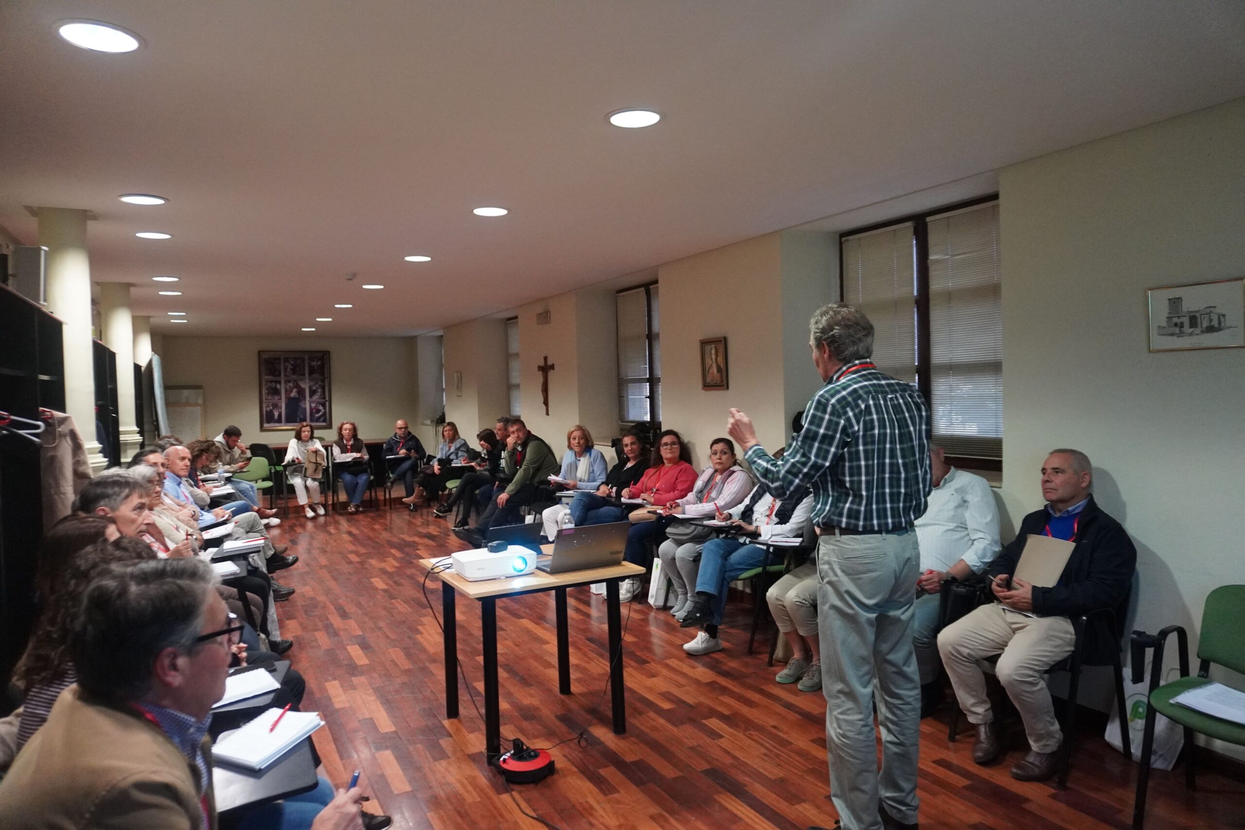 Tras la bienvenida, los asistentes participaron en una oración comunitaria y, posteriormente, en la ponencia “Liberados del optimismo: la esperanza de los seguidores de Jesús”, impartida por José Manuel Aparicio Malo, doctor en Teología y delegado de Laicos en la Archidiócesis de Madrid. Aparicio ofreció una profunda reflexión sobre la diferencia entre optimismo y esperanza, invitando a los presentes a vivir su compromiso con una mirada creyente, realista y llena de confianza.